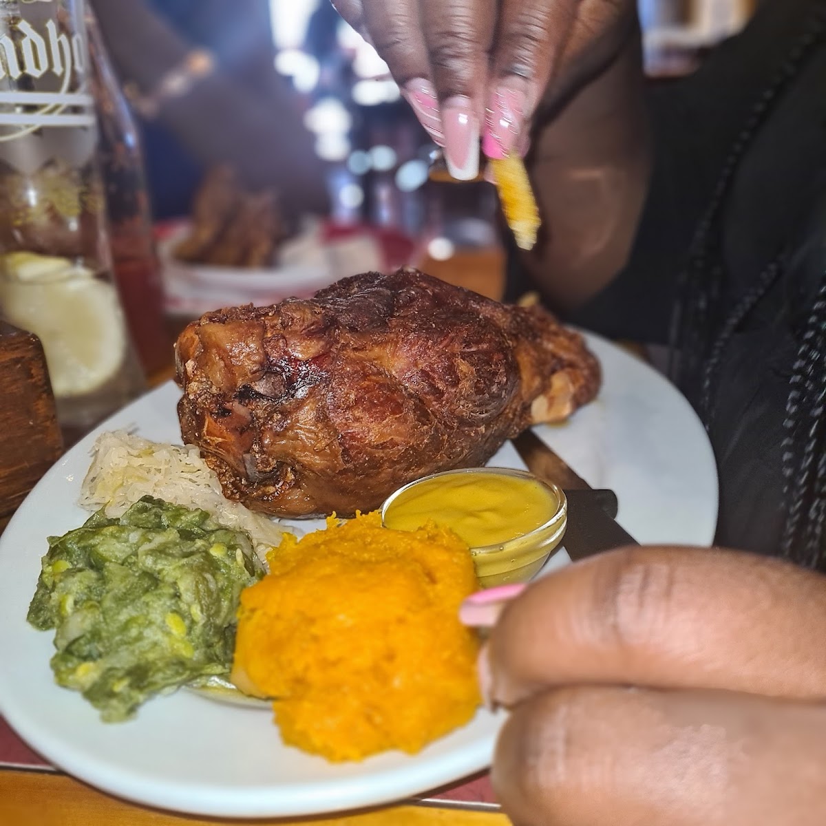 Great place, the staff is super friendly and efficient, the drinks and food were delicious, well priced and delivered in good time. I would definitely recommend and I would go back again:) We had the eisbein, chicken schnitzel, sex on the beach cocktail and some other drinks. Despite our meal being more than R300 per person it was very reasonable as we had food and 4 drinks each.